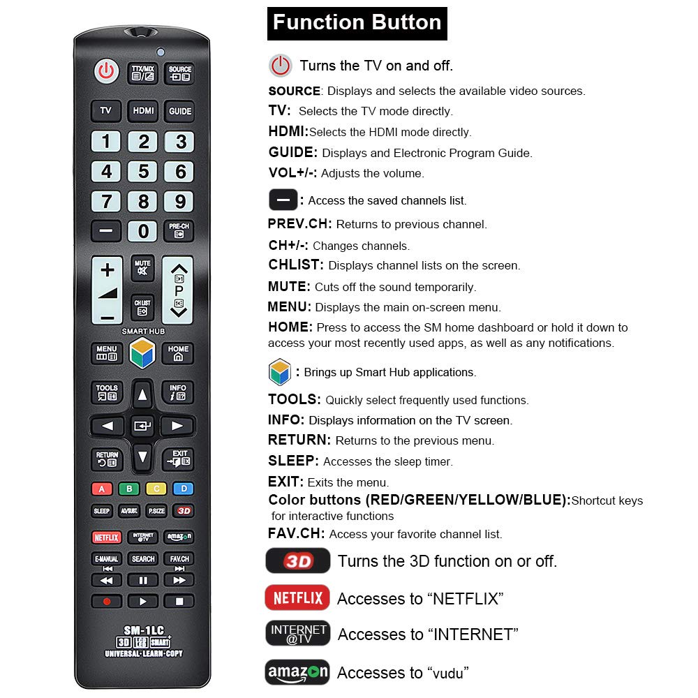 Amazon Com Universal Sm 1lc Remote Control For All Samsung Lcd Led Hdtv 3d Smart Tvs Electronics
